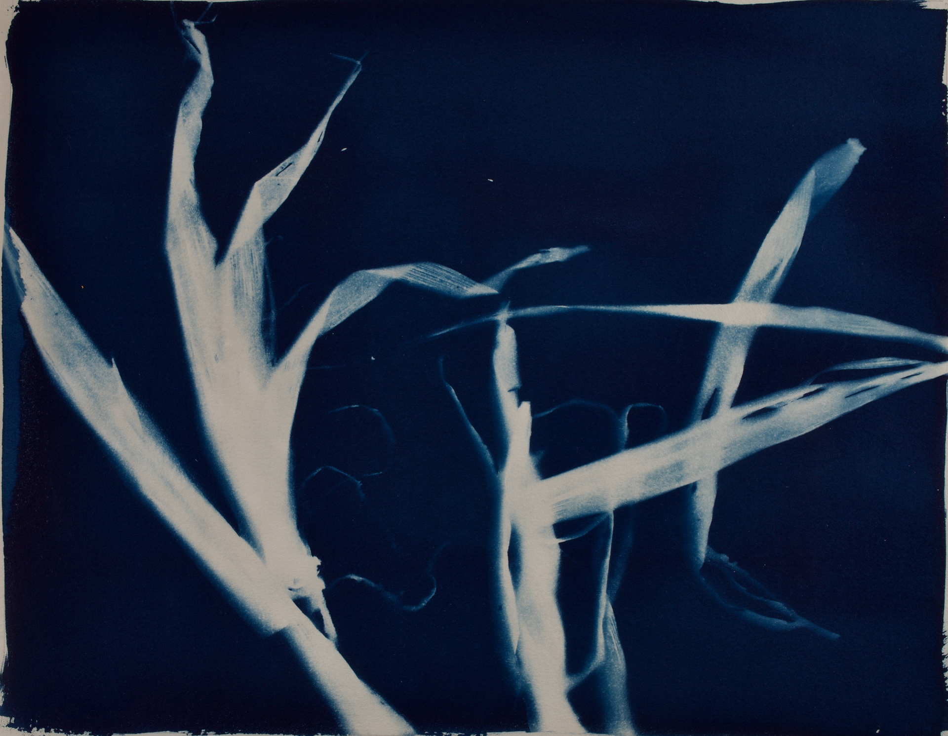 All journeys are ultimately inward. Images on paper made on a journey home, a pilgrimage to memories of made of air, sunlight, smells, rain, and soil. Photograms were made from found deer bones, gnarled branches, corn stalks cast mysterious, abstracted shadows onto paper. The movement of the sun over the objects direct the quality of line and shape, blurring and sharpening edges, leaving a final record of the elements of light, atmosphere and time record the shapes on paper. The length of time, time of year, time of day, quality of light of the exposure determine the final image.