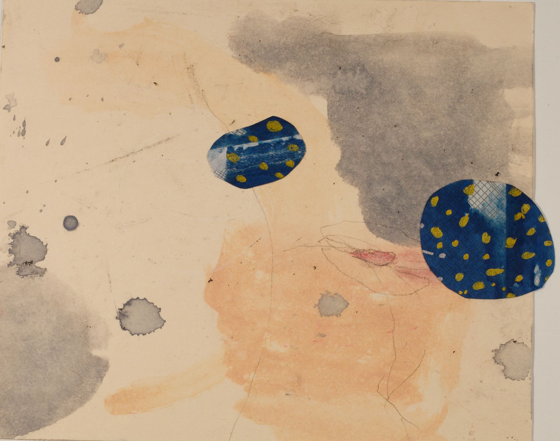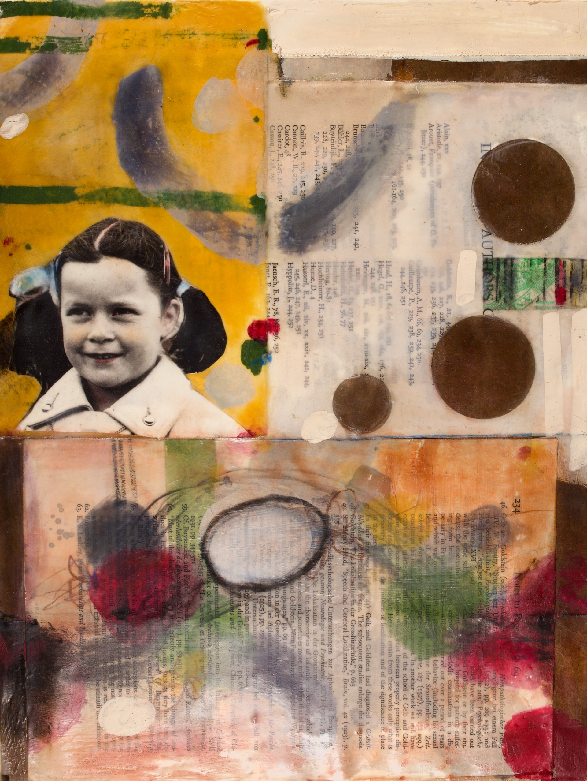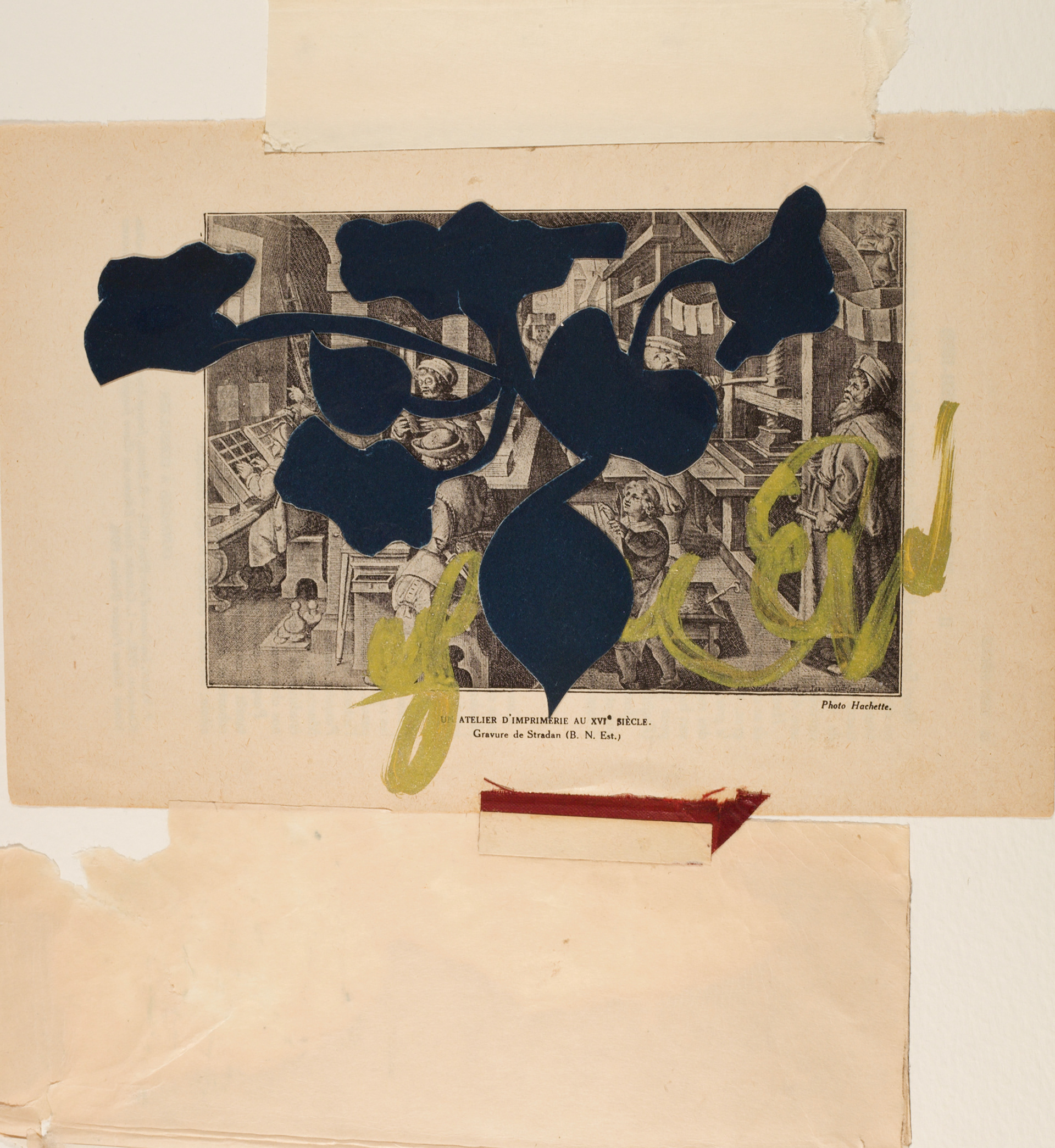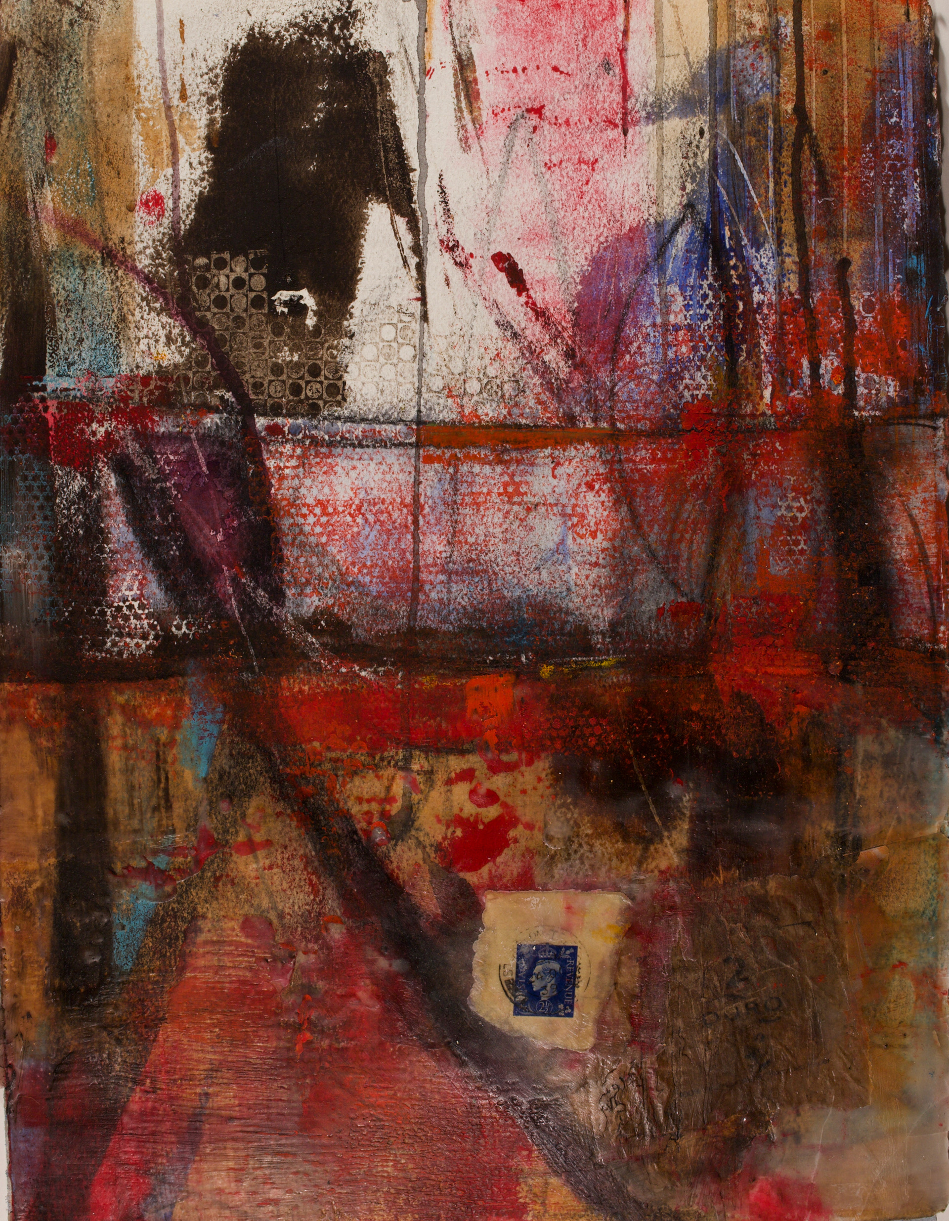 "Nest" Collage, Cold Wax and Pochoir. 30" x 40", 2019.