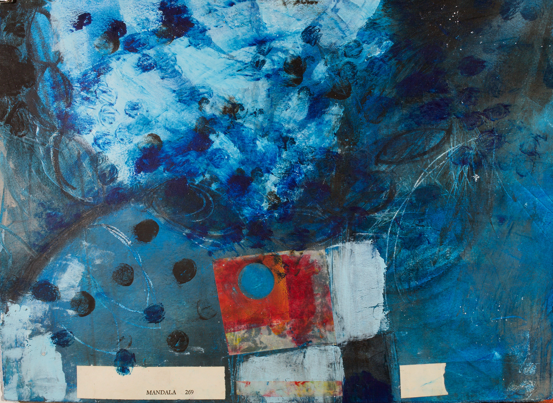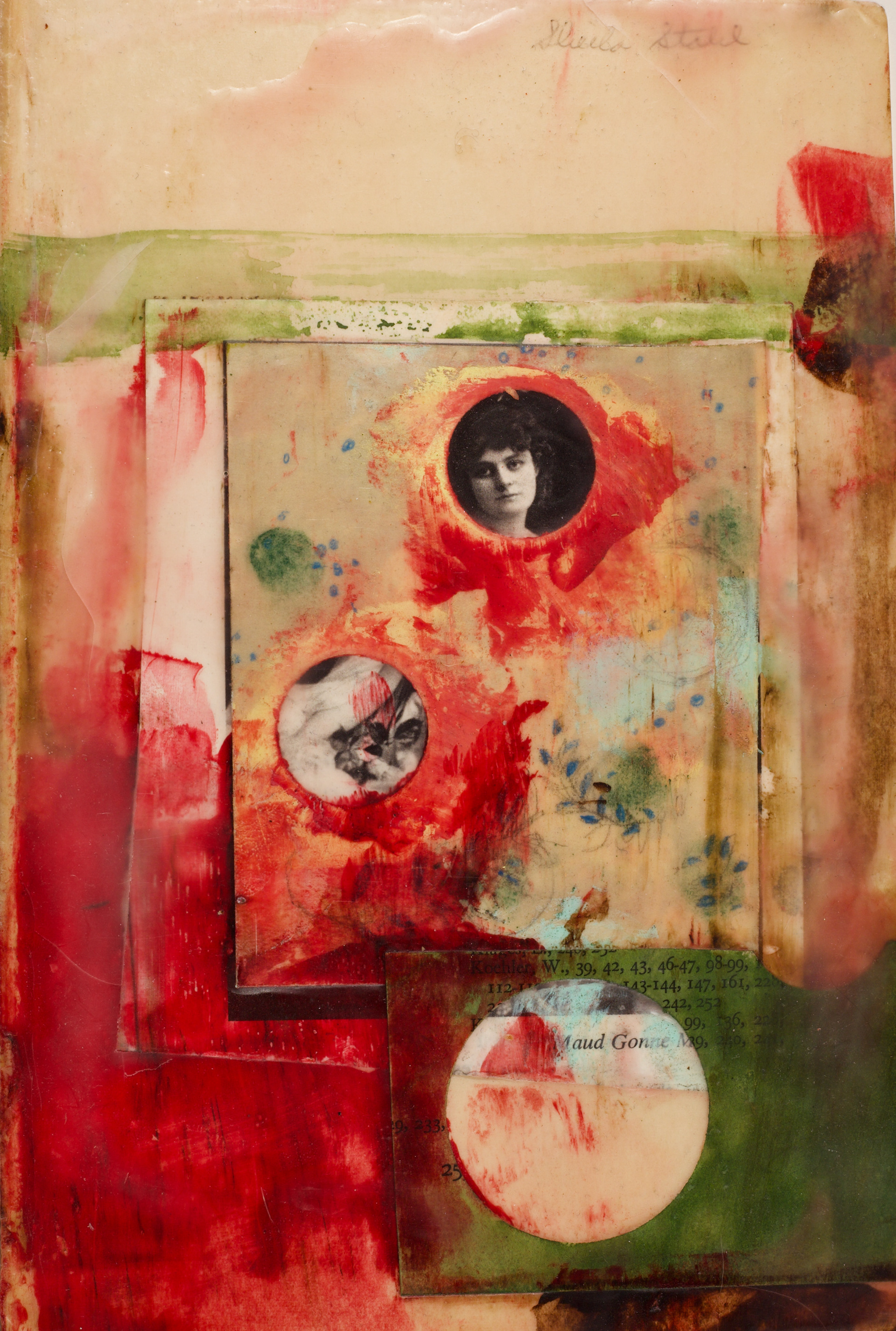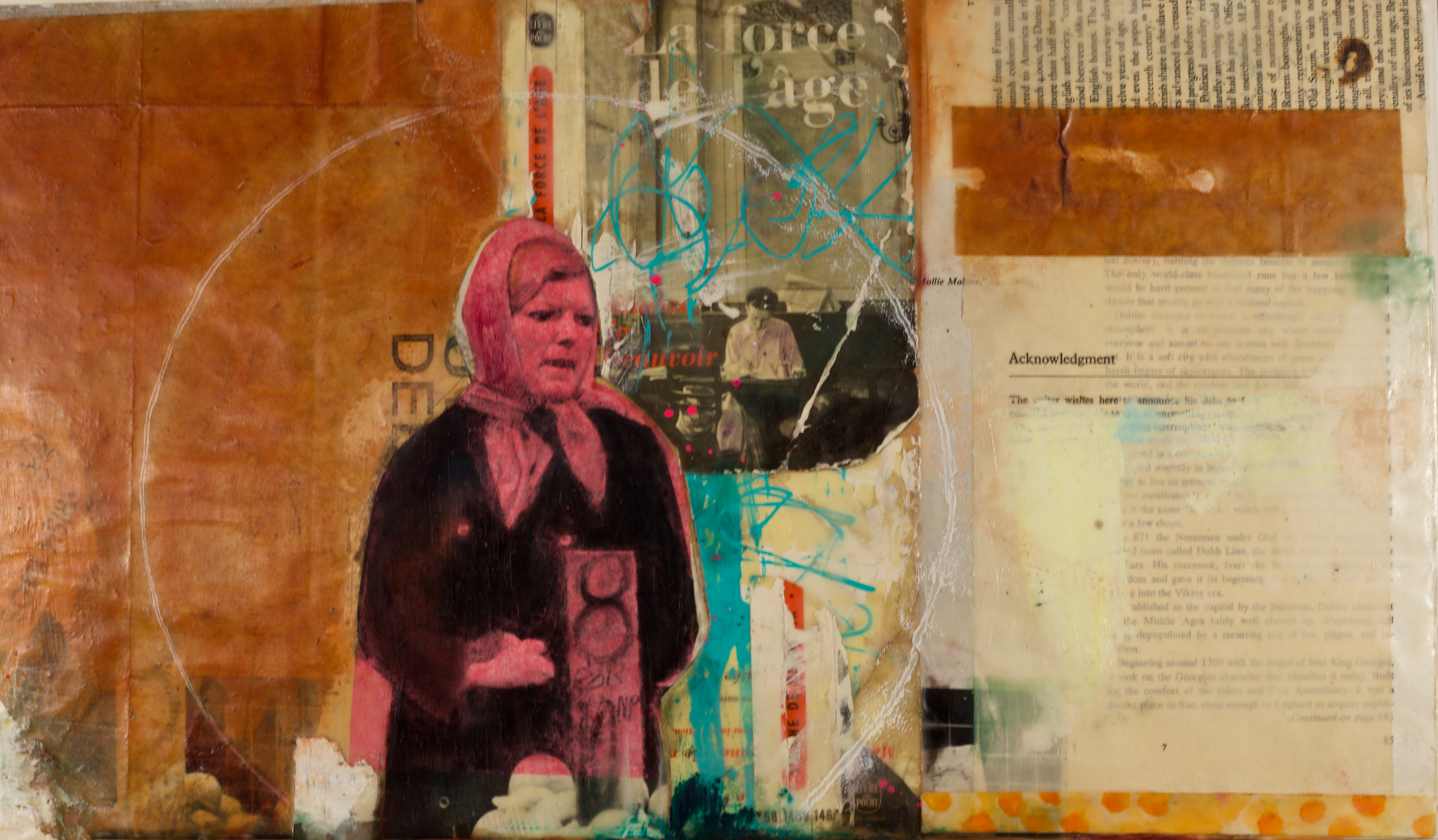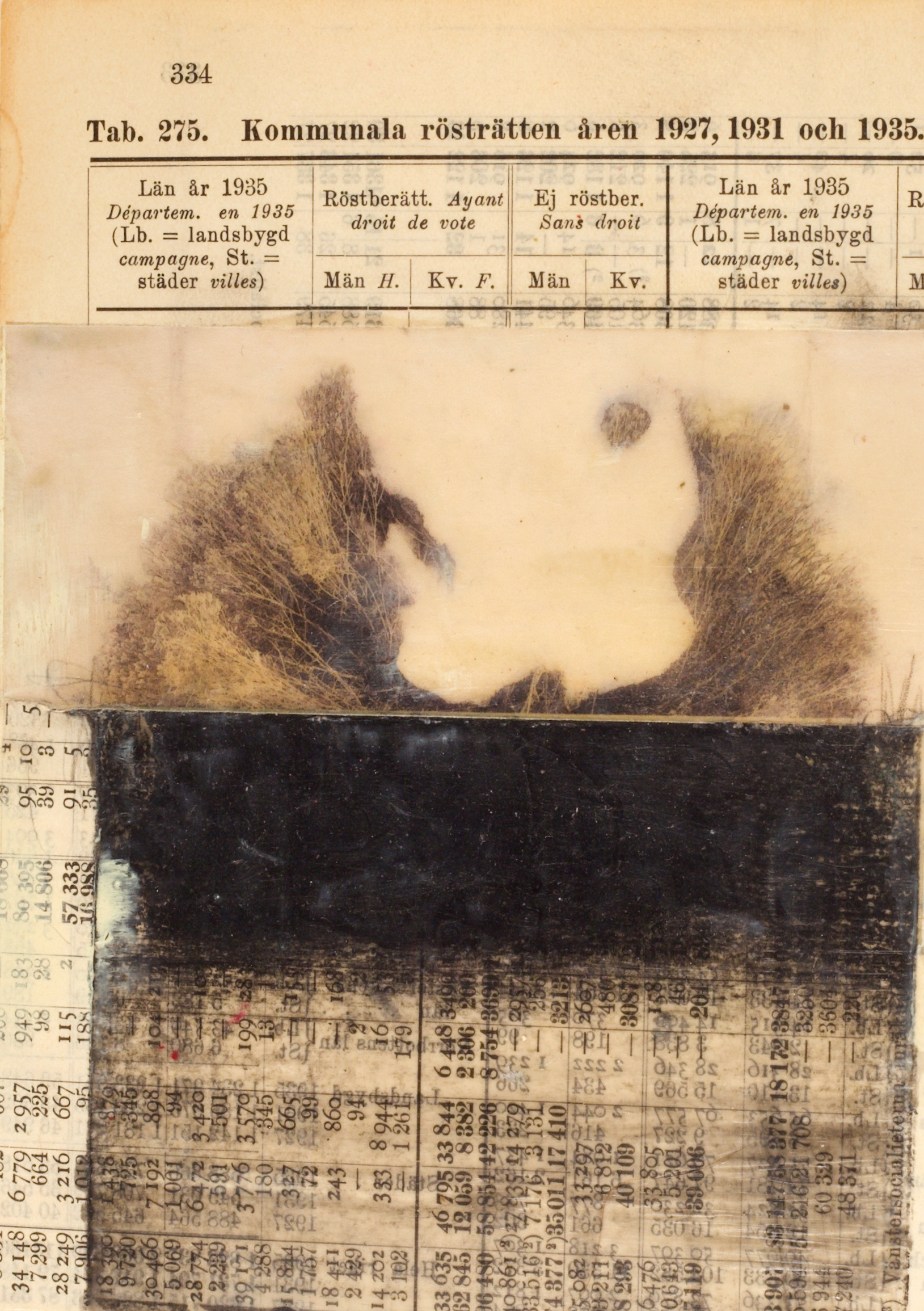 "Nest" Collage, Cold Wax and Pochoir. 30" x 40", 2019.
