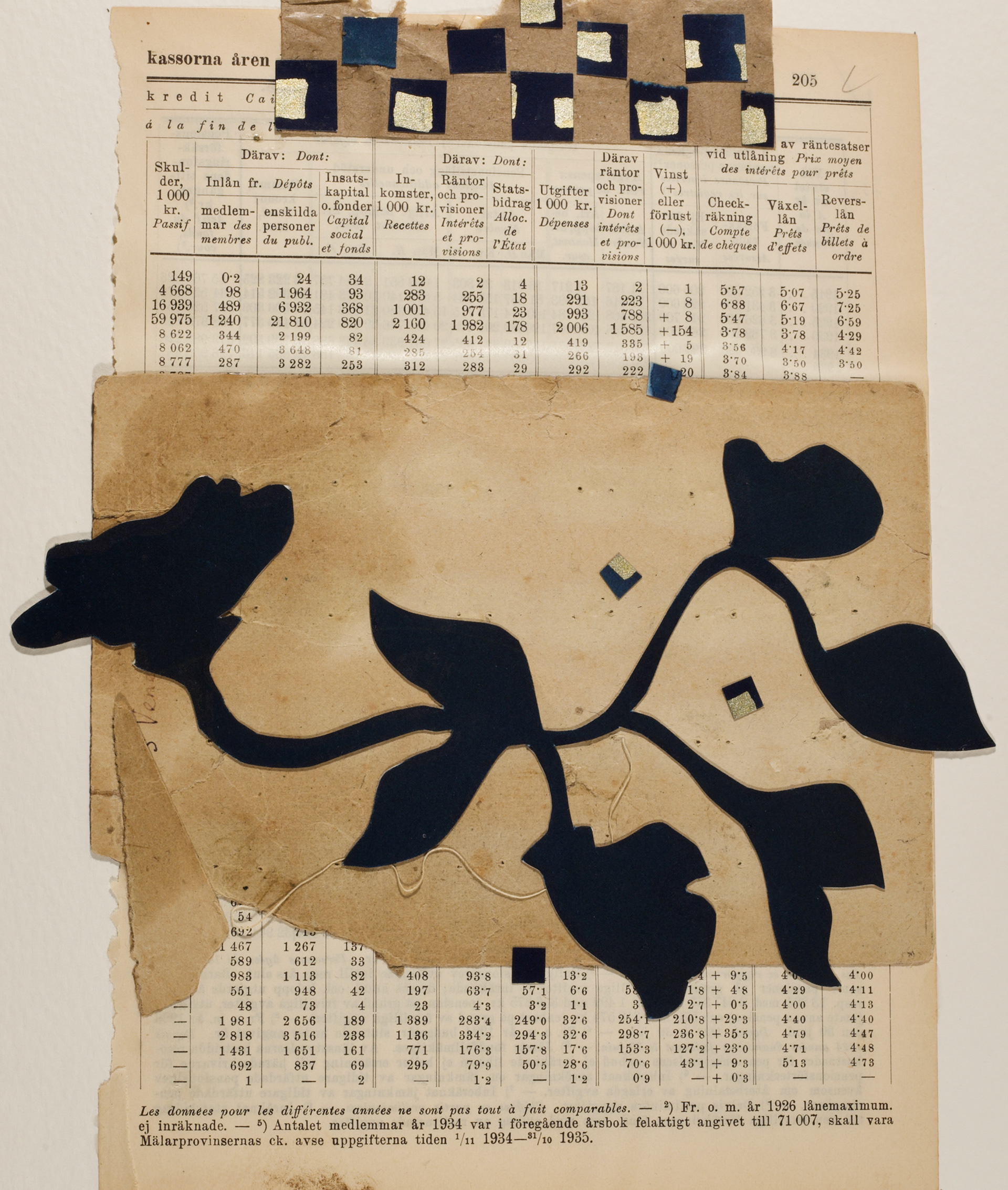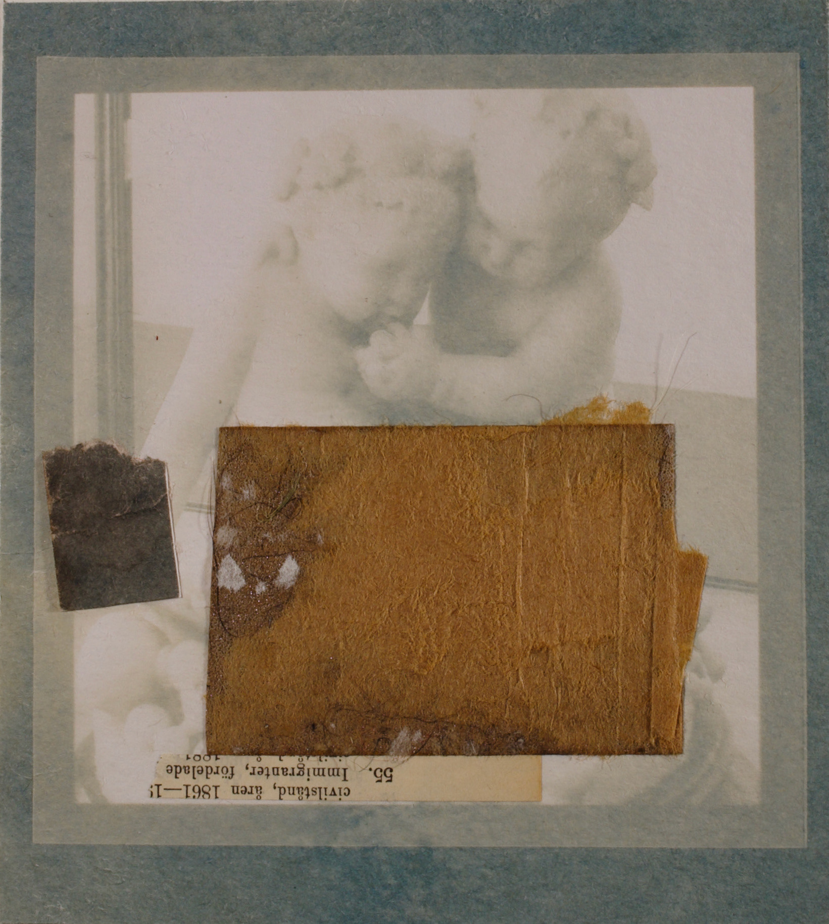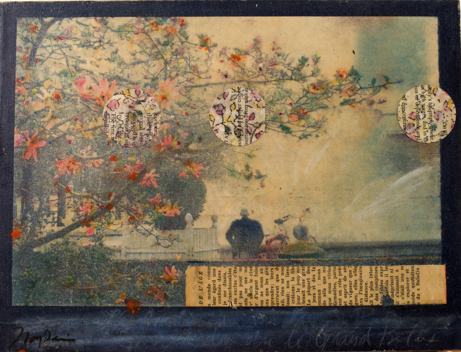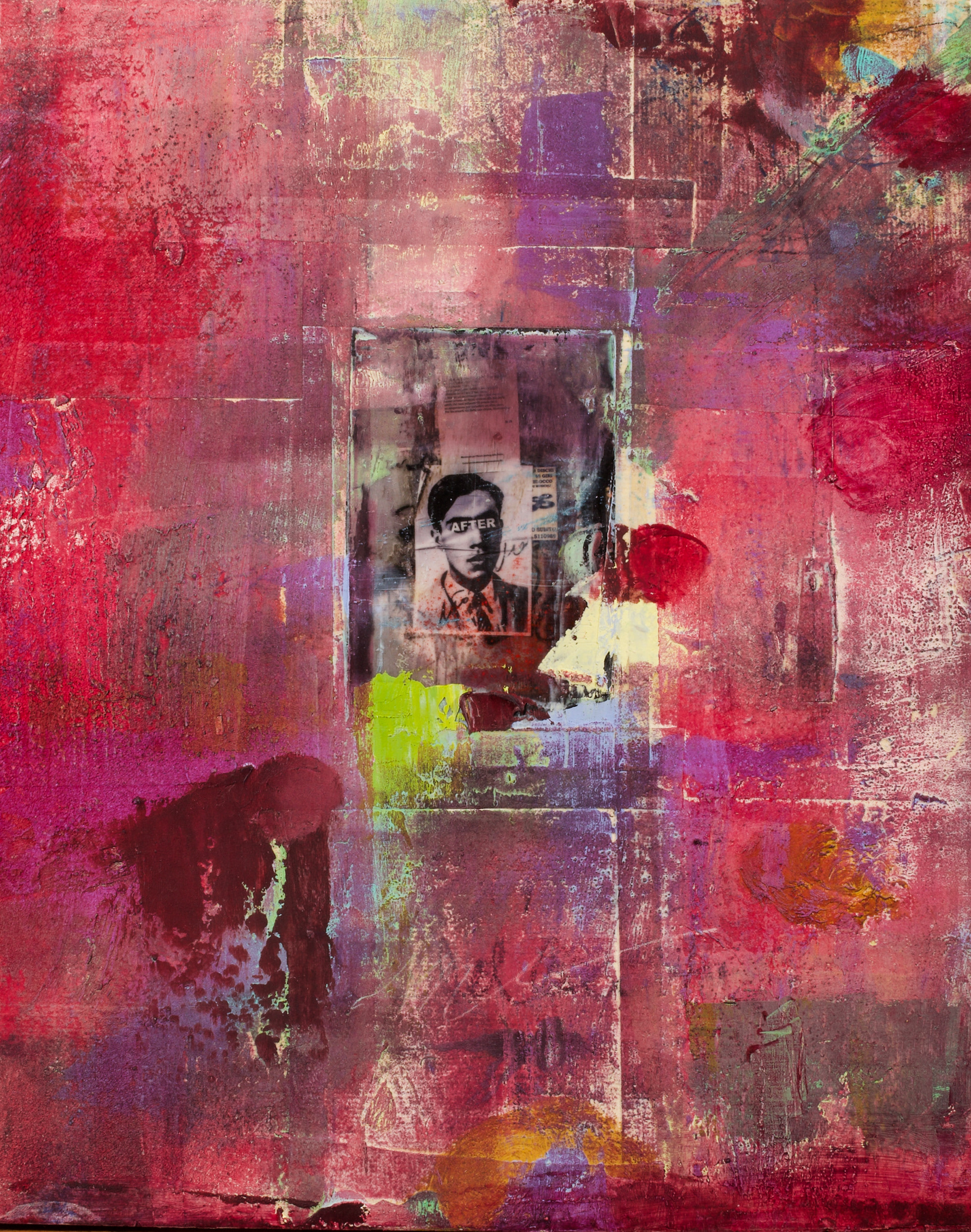 "Nest" Collage, Cold Wax and Pochoir. 30" x 40", 2019.